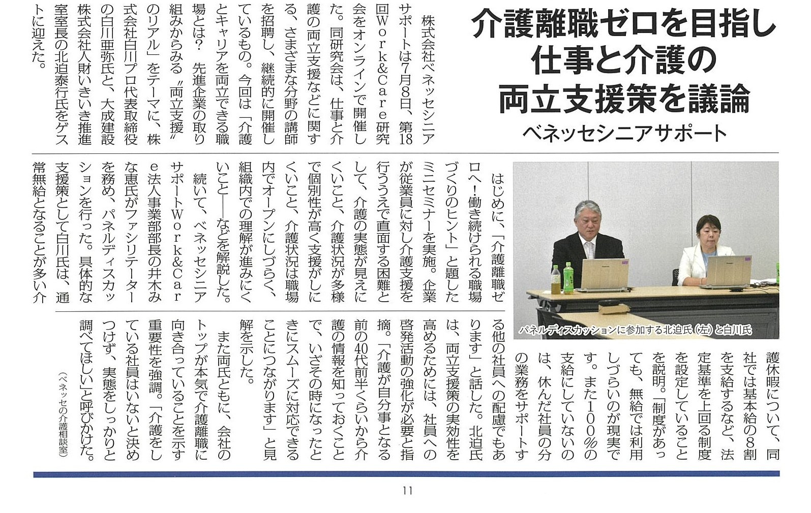 2025年9月 ベネッセシニアサポートの「Work&Care研究会」にパネリストとして参加しました